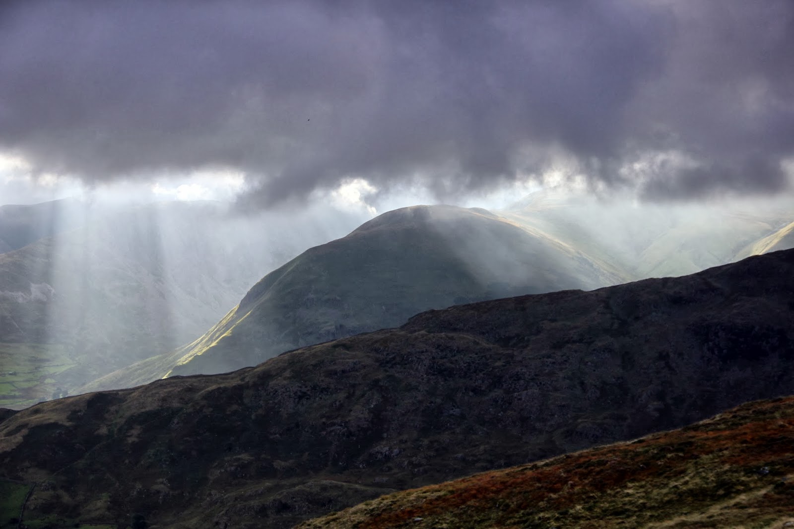 A bright and breezy morning and heading up Langstrath for Cam Crag ridge. The idea is to drop down into Comb Gill and put up my new tent. Have n't had time to sleep in it yet but want to see what it's like in the field. It will be somewhere to eat my sandwiches in.